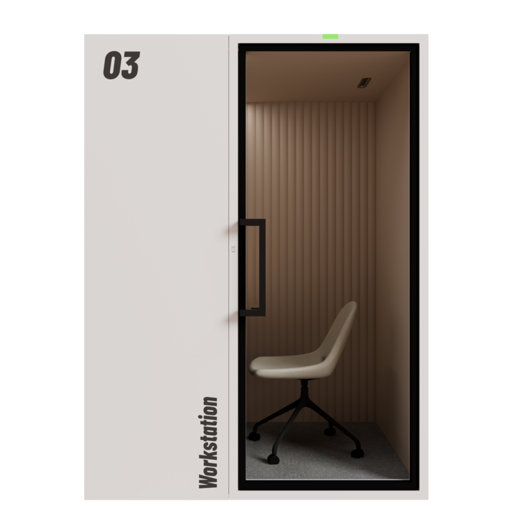 De ART Space wordt geleverd met een stoel en werkblad, ergonomisch ontworpen voor korte calls, focusmomenten en videogesprekken.