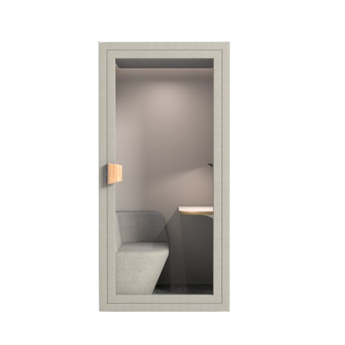 De Momentum wordt geleverd met een minisofa, een bureau en een werkplekverlichting die ergonomisch zijn ontworpen voor het werken met een laptop, een telefooncel en zoom-/conferentiegesprekken.